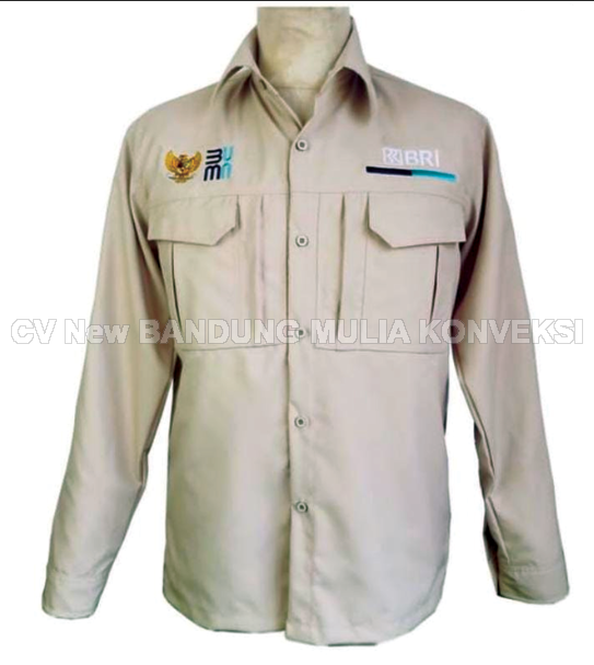 Kemeja seragam untuk karyawan perusahaan (bank, bumn, dan lain-lain) dengan model kemeja seragam tactical yang sedang trend saat ini, cocok digunakan untuk aktifitas di luar ruangan maupun di dalam ruangan. Terbuat dari bahan yang lembut dan nyaman, juga memiliki daya tahan yang baik yang sudah teruji kualitasnya. Untuk identitas perusahaan dilengkapi dengan logo bordir dengan desain yang diesuaikan dengan kebutuhan.